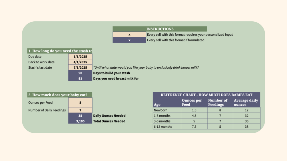Welcome to our maternity leave pumping calculator. We built this product to simplify the overwhelming process of building your own breast milk stash.